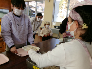 次は液を漉していきます。上級生を中心に作業が進んでいきます。下級生も一緒に鍋をもったり、進んで使った道具を洗ったり…。気づいたら行動できるのがくんまっこです。