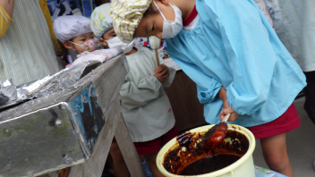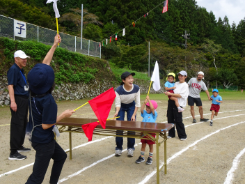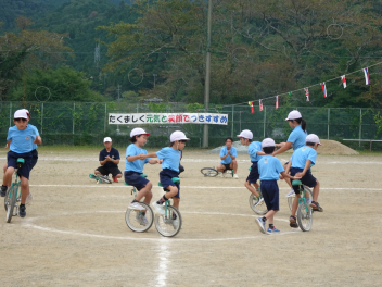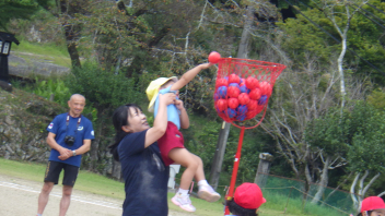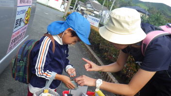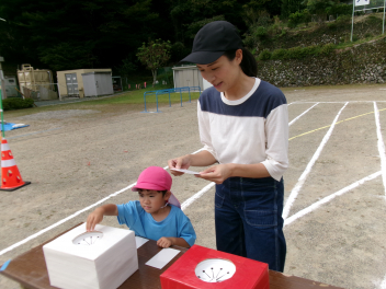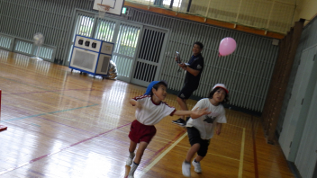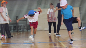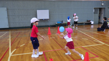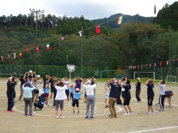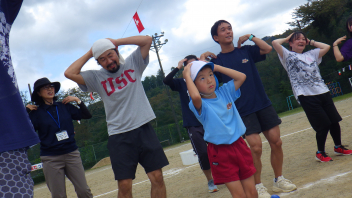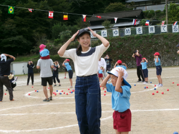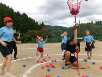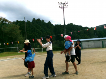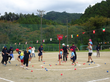 小学生と一緒に遊ぶ時間です。5・6年生が遊びを考えてくれます。