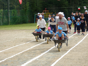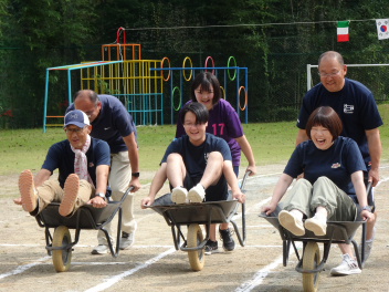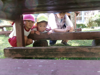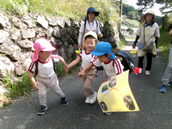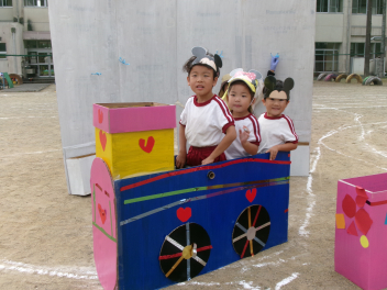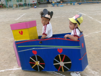 トロッコがないけど、自分たちで繋がってトロッコ風にしたよ!