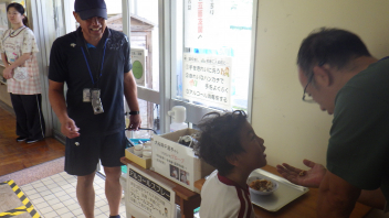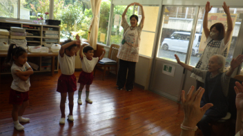 お隣の建物に行き、デイサービスに来ているおじいちゃん・おばあちゃんと交流する日。