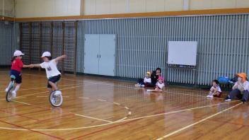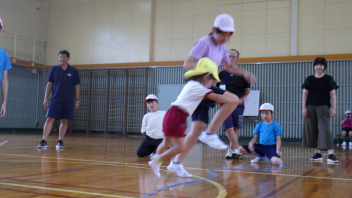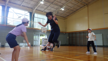お姉さん・お兄さんが、そっと様子を見守ったり、一緒に跳んだりしてくれました。