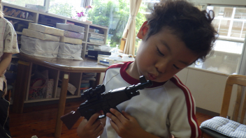 “撃った後に、ピストルから出る煙をフゥ~とやっているところ”でした!