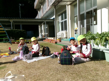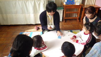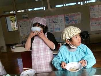 さて、味噌汁を食べた後のことです…年長さんがにっこり笑顔で走ってきました。