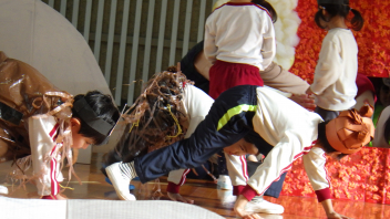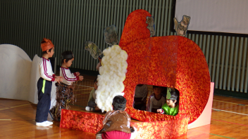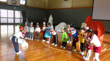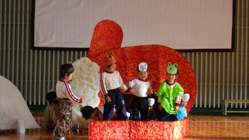 あっ、年長さんが収穫した大根は…年長さんが形の真似をしてくれました!