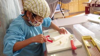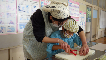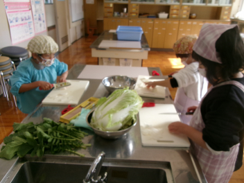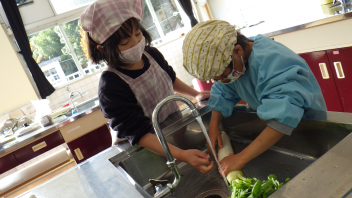 野菜を洗う・皮を剥く・切る…2年生の真似をしながら進めました。