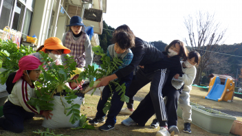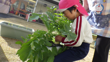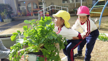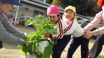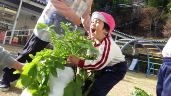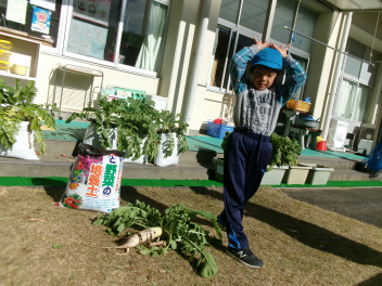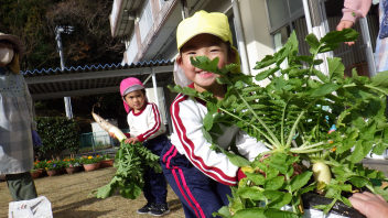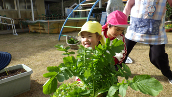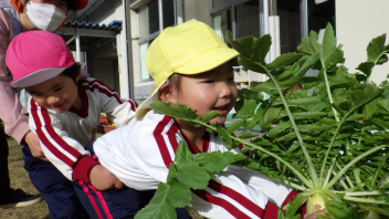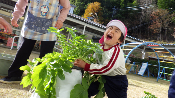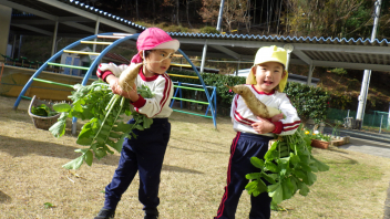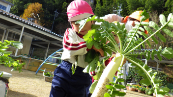 一緒に種まきをした、ひよこくみさ組さんとうさぎ組さんも大根を抜きましたよ。