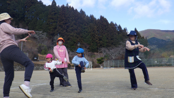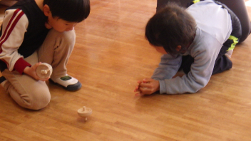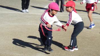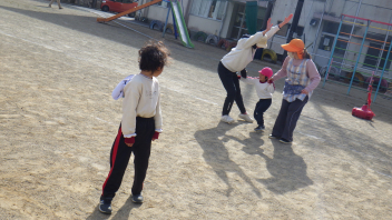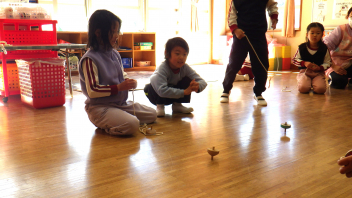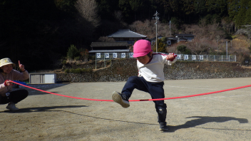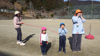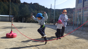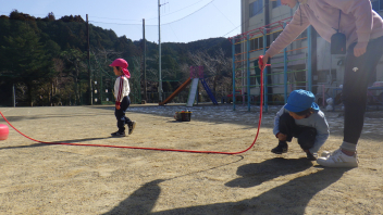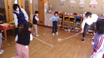 雪遊びの後、年長さんは縄跳びを使って遊びました。