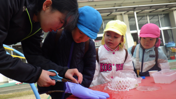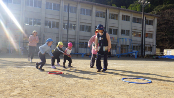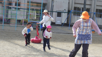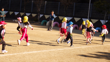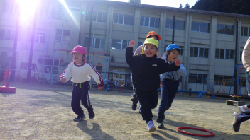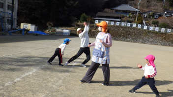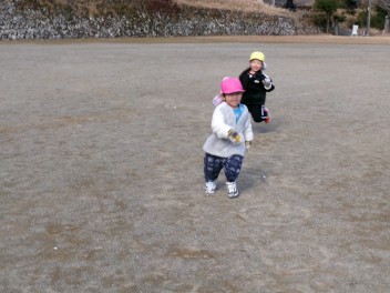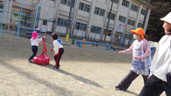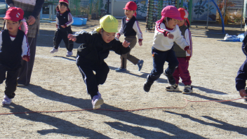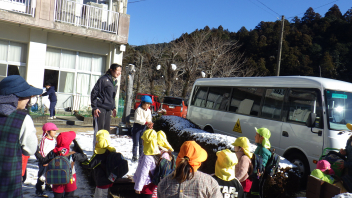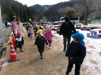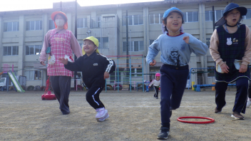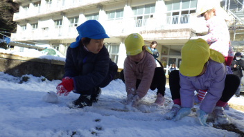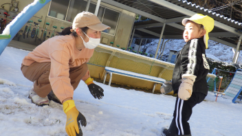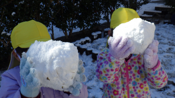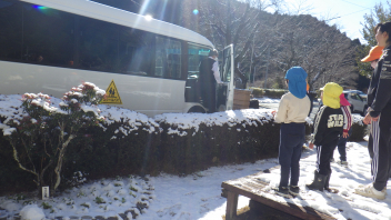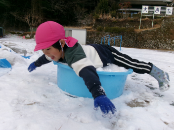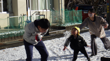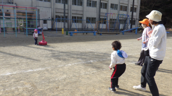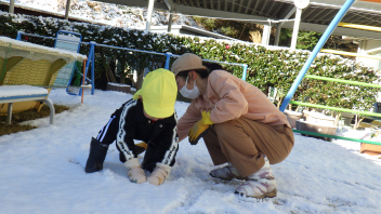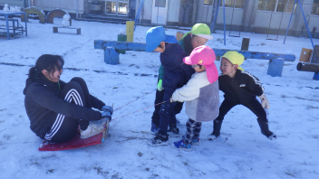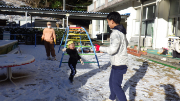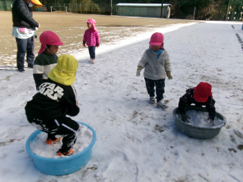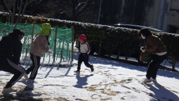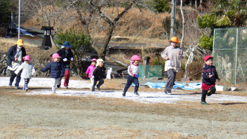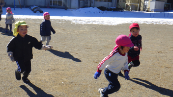 ひよこ組さんとうさぎ組さんは、雪から雪へのお引っ越しをしていっぱい走ったよ。