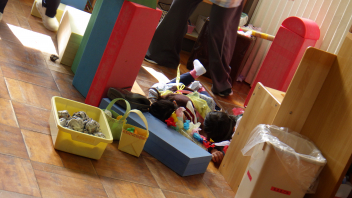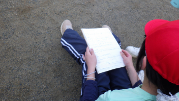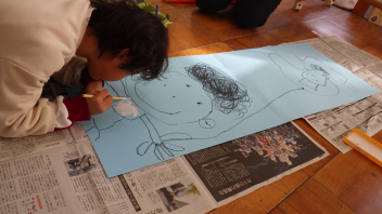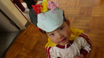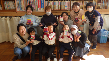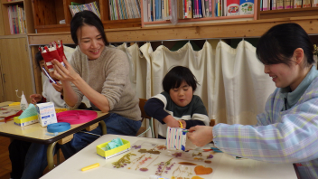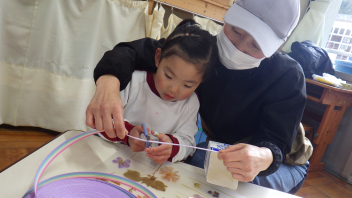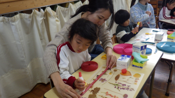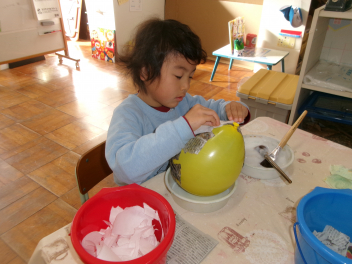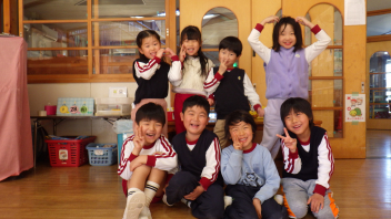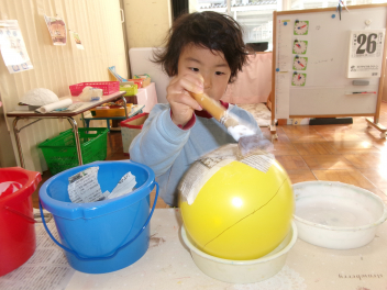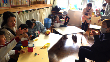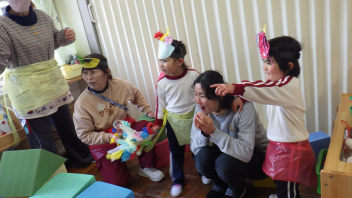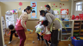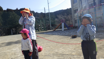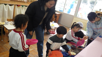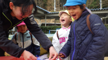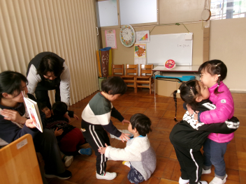 すると…上阿多古の年中さん、顔が見えないくらいの塊ができたよ。