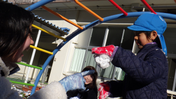 雪遊びや体を動かして遊んだ後は、みんなでお弁当を食べたり…