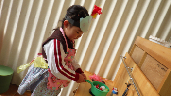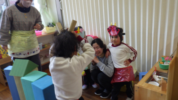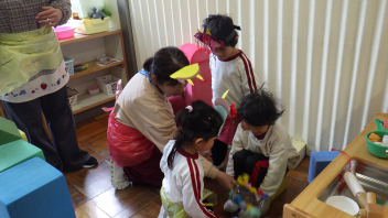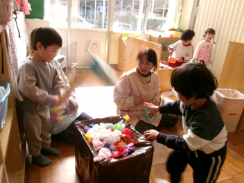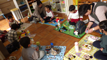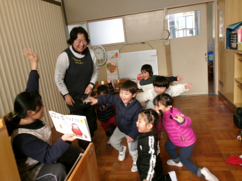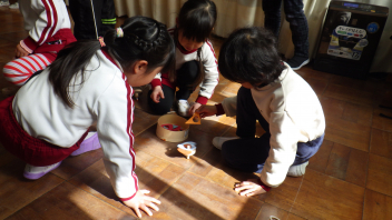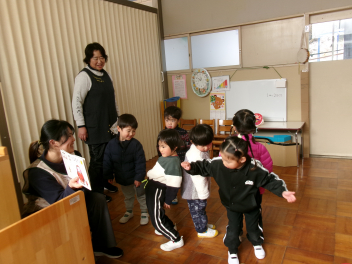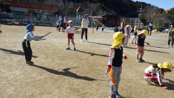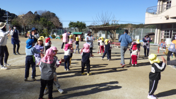 今日は交流保育で下阿多古幼稚園と上阿多古幼稚園の友達が来る日。