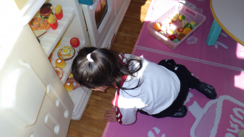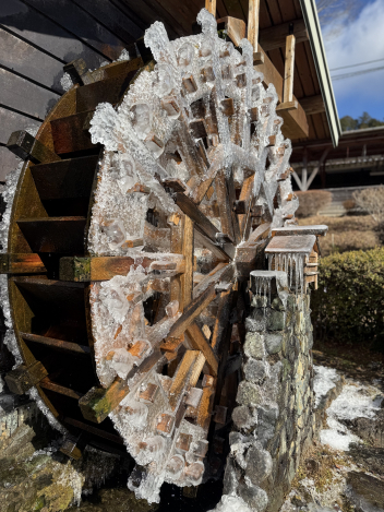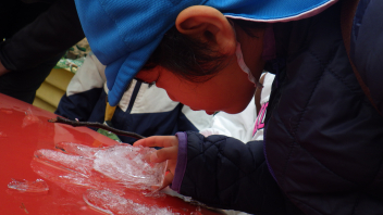雪遊びで冷たくなった手をお湯で温めホッと一息。