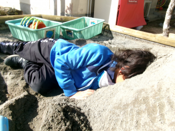 シルバーさんと一緒に、うさぎ組さんとひよこ組さんも砂場を整えてくれたんだよね!