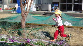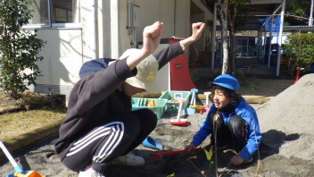 ちょっぴり冷え込む朝となりましたが、日中の日差しは暖かく、戸外遊びが気持ちいい日になりました