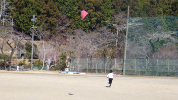 運動場で凧揚げ。卒園までにやりたいリストに凧揚げがあったようです