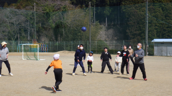 小学生と先生たちを誘ってドッジボールを楽しみました