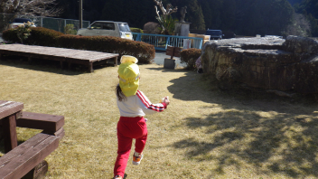 うさぎ組さんとひよこ組さんは朝からお面を付けて元気いっぱい!
