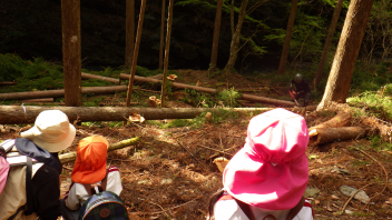 ちょうど伐採の最中で、根元で切った木が倒れる瞬間を見ることができました。