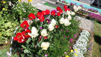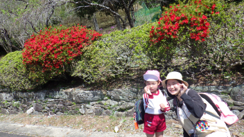 でも、真っ赤なつつじが咲いているし、枝垂桜もまだ残っていました。