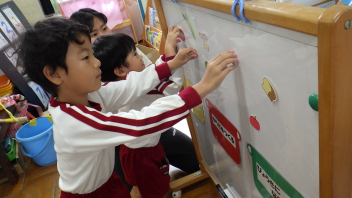 年長さんの姿をよく見て、真似しているなと感心しました。