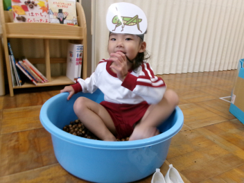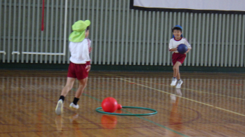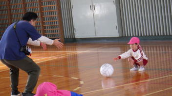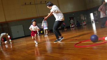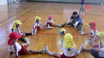 到着後、すぐに外で遊びたかったのですが、昨日の雨の影響もあり体育館で遊びました。