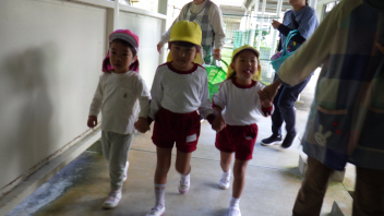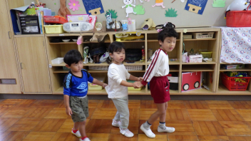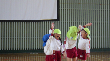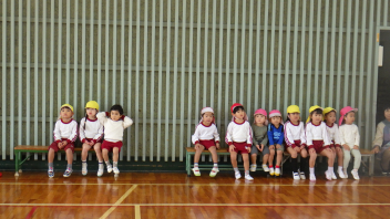 体育館に行く前、年長のぞう組さんから「今からは僕いないから頼んだよ!」と言われた年少うさぎ組さん。