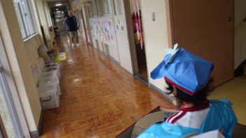 サメか?クジラか?なんだろう?と思ったら、小学校に来ていたALTの先生でした。