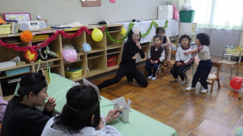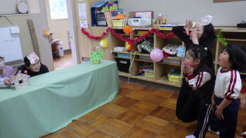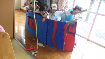 本当に海にいるかのようなやりとりが繰り広げられ、子供たちと職員が一緒になって海の世界を楽しんでいます♪