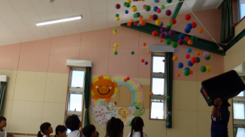 2年生が風船の上げ方や動きをうまく調整してくれました。