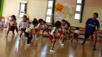 体育館に行く前、年長のぞう組さんから「今からは僕いないから頼んだよ!」と言われた年少うさぎ組さん。