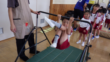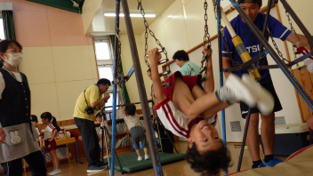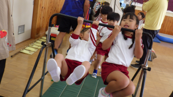 それぞれの用具を使う中で、腕力や平衡感覚など、子供たちの身体の育成につながる要素がいっぱいでした。