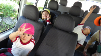 いい天気の中、交流保育ということで下阿多古幼稚園に出掛けました。