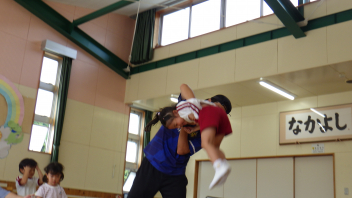 最後は、せんべー先生に空中くるりんぱをやってもらい、子供たちは大満足!
