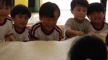 隠れているけど、なんとなく見えているところが幼稚園児らしい。
