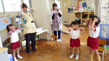二俣幼稚園に着くと、二俣幼稚園のお友達がみんなで出迎えてくれました。