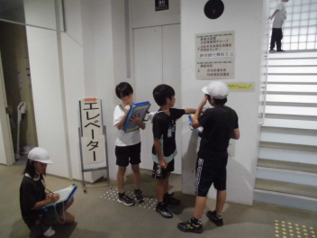 階段やエレベーター、待合場所の床など舞阪っ子たちの探索は続きました。