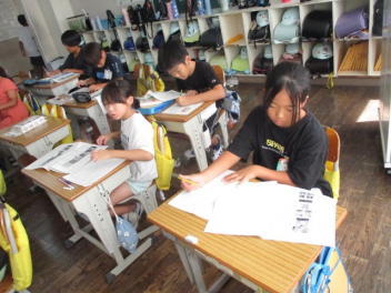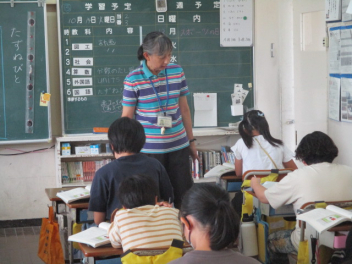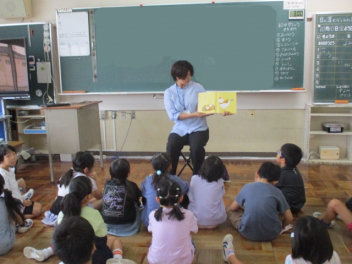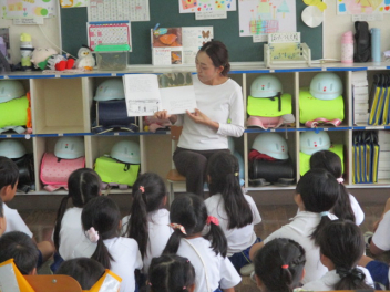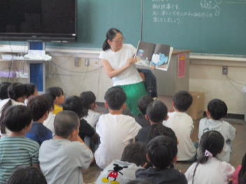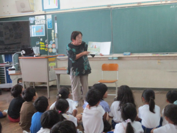 •  日中も涼しい風を感じる舞阪小学校。本日も読み聞かせボランティアの方による読み聞かせが行われました。
