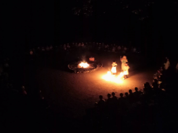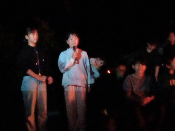 キャンプファイヤーは、火の神様より火を分けていただき、目標を新たにする第1部と火を囲んで全員で楽しむ第2部とに分かれて行います。どちらも実行委員が中心となって進行しました。