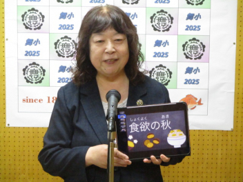 学校では、「行事の秋」と言われることがあります。校外学習や修学旅行、舞小フェスティバルなど2学期に行われるたくさんの行事を通して舞阪っ子たちが成長するのを楽しみにしているとまとめていました。