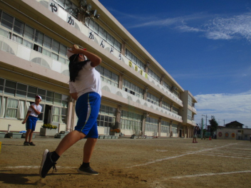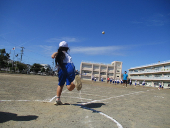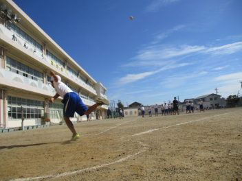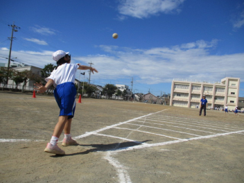 6年生は、広くつくられた測定場で「ソフトボール投げ」を行います。少し、暑さを感じましたが全力で取り組んでいました。