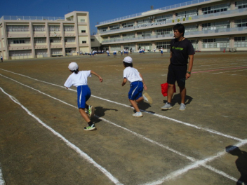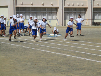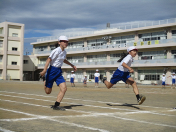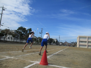 •  晴天に恵まれ、3・4年生は秋の新体力テストを行いました。
