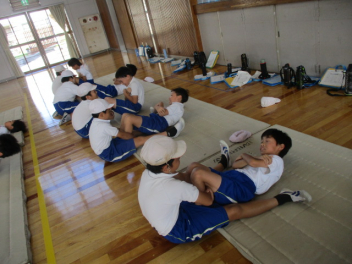 本日は、「ボール投げ」「50m走」「上体起こし」「反復横跳び」「立ち幅跳び」を中心に実施しました。