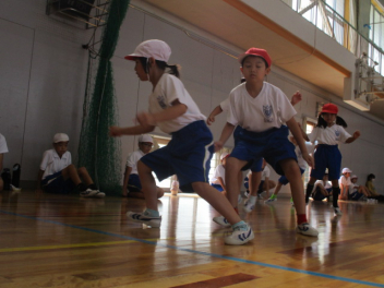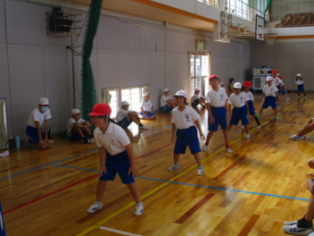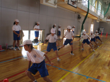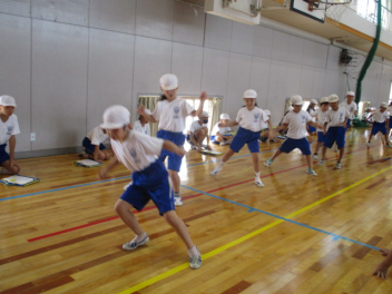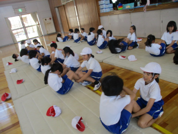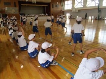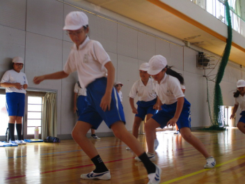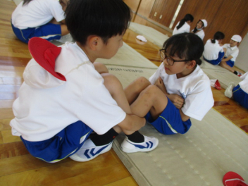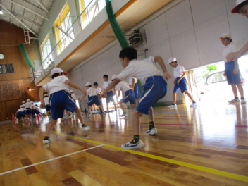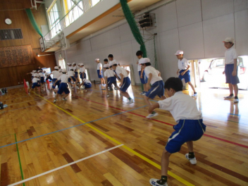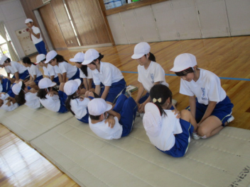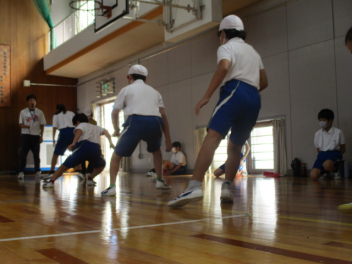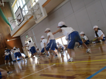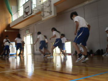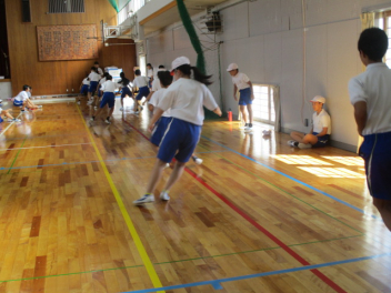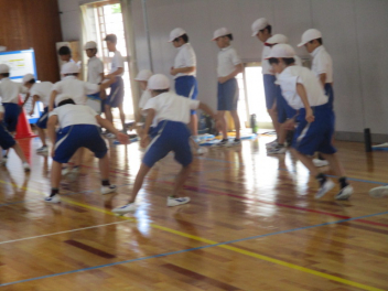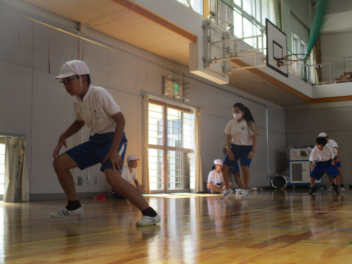 6年生のあるクラスのスタートは、「反復横跳び」でした。さすがは6年生、ペアを素早くつくり、てきぱきと測定を進めていました。きれいになった床の体育館で最高記録がでたでしょうか。