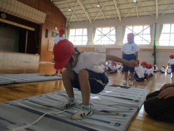 1年生は初めての取り組み、6年生は小学校生活最後の新体力テストになりました。