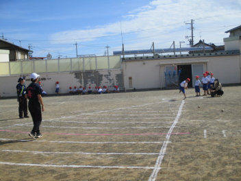 2年生のサポートを任せられた5年生は、前日までにボール投げは実施済みのようでした。