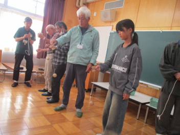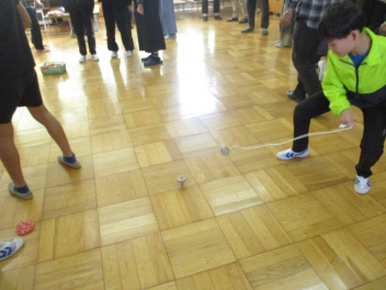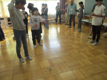 一番の盛り上がりを見せていたのは昔の遊びクラブ。ボランティアさんと一緒に「お手玉」や「けん玉」、「こま回し」などを楽しんでいました。