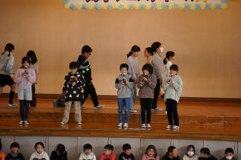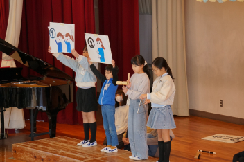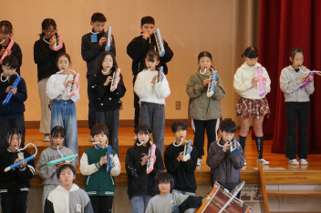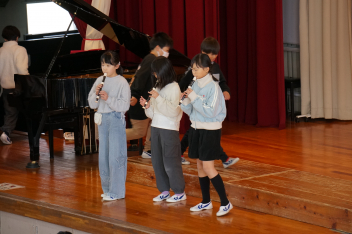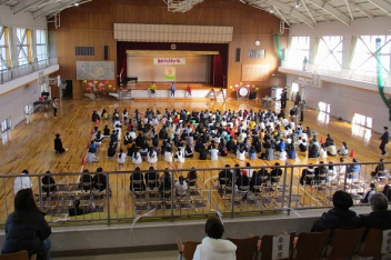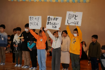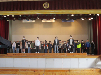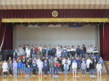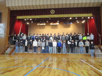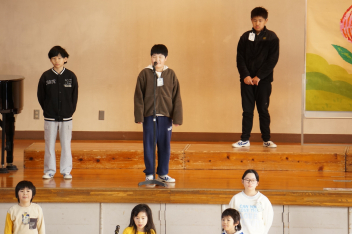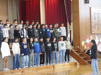 会の最後には、校歌を5番まで元気よく歌いました。歌詞をよく聞いていると、歌詞に込められた地域の思いが伝わってきます。ただ歌うだけでなく、自分を振り返りながら歌えるとより成長できそうです。