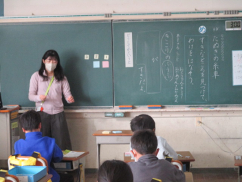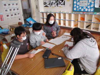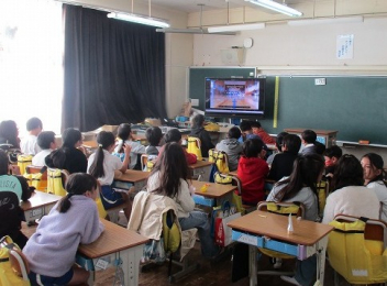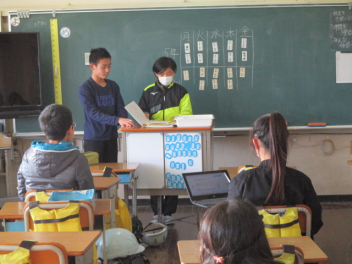 画面越しに学級の友達に見守られながら、2、4年生の代表児童が1学期にがんばったことなどを発表しました。