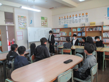 舞阪小の合言葉「さ・か・な」が達成できたか問いかけていました。