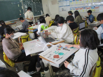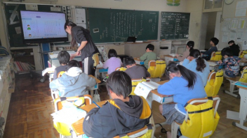 この日は、登場人物の相関図をつくり、人同士のかかわりについて学んでいました。ノートにまとめたものは、タブレットで写真を撮り、オクリンクというアプリをつかって交流をしていきます。登場人物のつながりを意識しながら学びを深めていくことで「海の命」とは何であるのかにせまってほしいと思います。